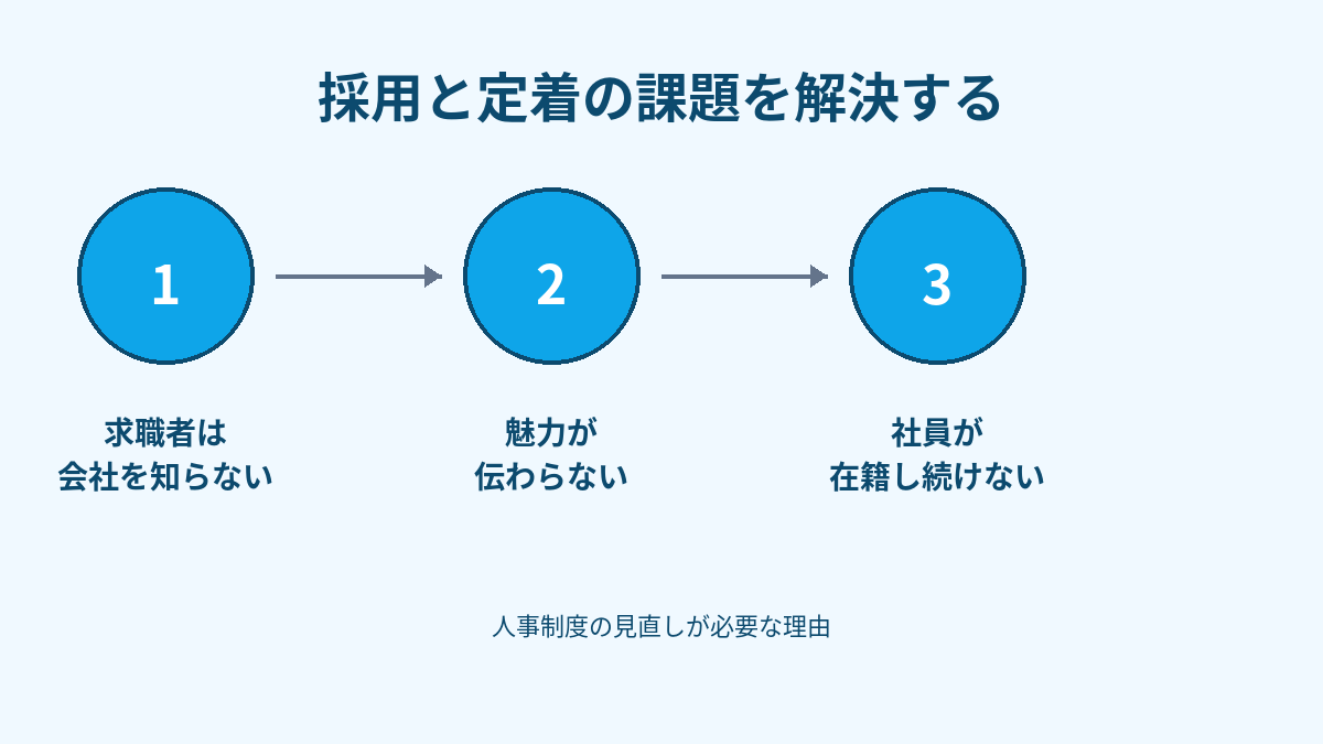 「優秀な人材が採用できない」「採用してもすぐに辞めてしまう」といった課題は、多くの経営者が抱える共通の悩みです。これらの課題を解決する鍵は、実は採用活動そのものだけでなく、その根底にある人事制度にあります。